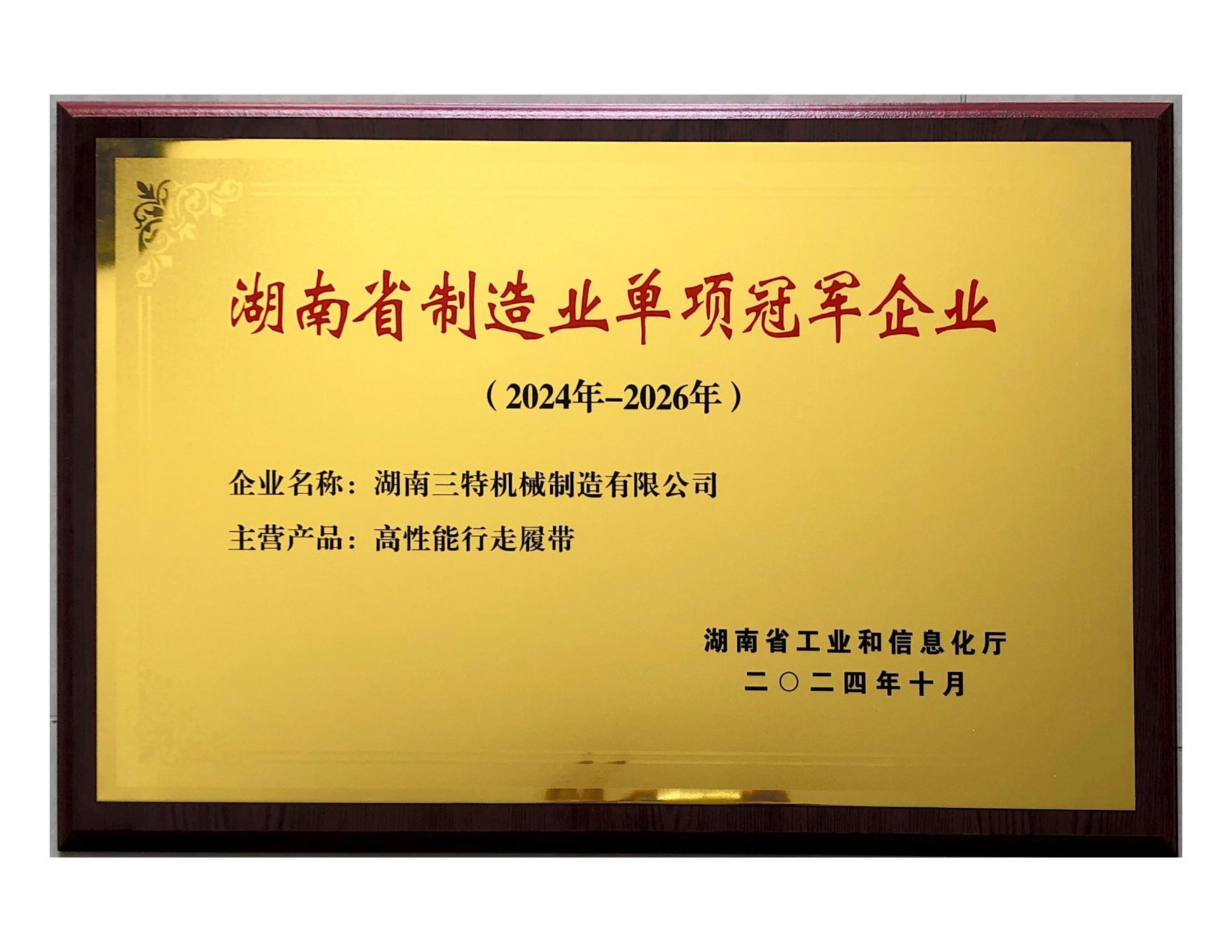 自主研發(fā)的高性能履帶獲評“湖南省單項(xiàng)冠軍產(chǎn)品”