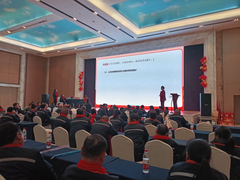 年會在活力四射的開場舞《向前沖》中拉開帷幕??偨浝戆l(fā)表重要講話,全面復盤2025年公司運營成果,并深入部署2026年戰(zhàn)略規(guī)劃,為公司發(fā)展指明方向。隨后的表彰環(huán)節(jié),對在核心指標考核中表現(xiàn)突出的團隊與個人進行嘉獎,樹立榜樣力量。常務副總及7大部門負責人依次發(fā)言,分享經驗、交流思路,凝聚發(fā)展共識。感恩環(huán)節(jié)全員共唱《感恩的心》,傳遞溫暖與感動;知識競賽環(huán)節(jié),各代表隊激烈角逐,展現(xiàn)員工扎實的專業(yè)素養(yǎng);制造中心副總發(fā)言后,知識競賽頒獎環(huán)節(jié)將現(xiàn)場氛圍推向高潮。原創(chuàng)舞臺劇《礪劍征程》以沉浸式表演,回顧公司發(fā)展歷程,引發(fā)全場共鳴。